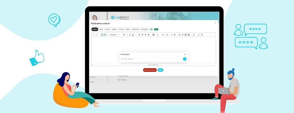 C’est pourquoi nous avons conçu un outil pour simplifier votre travail quotidien : le nouvel Assistant IA de Vip Connect. Grâce à cette fonctionnalité, générer des textes créatifs, traduire ou adapter la tonalité d’un post devient plus rapide et plus facile que jamais. Dites adieu aux blocages créatifs et commencez à produire du contenu de haute qualité en quelques secondes !