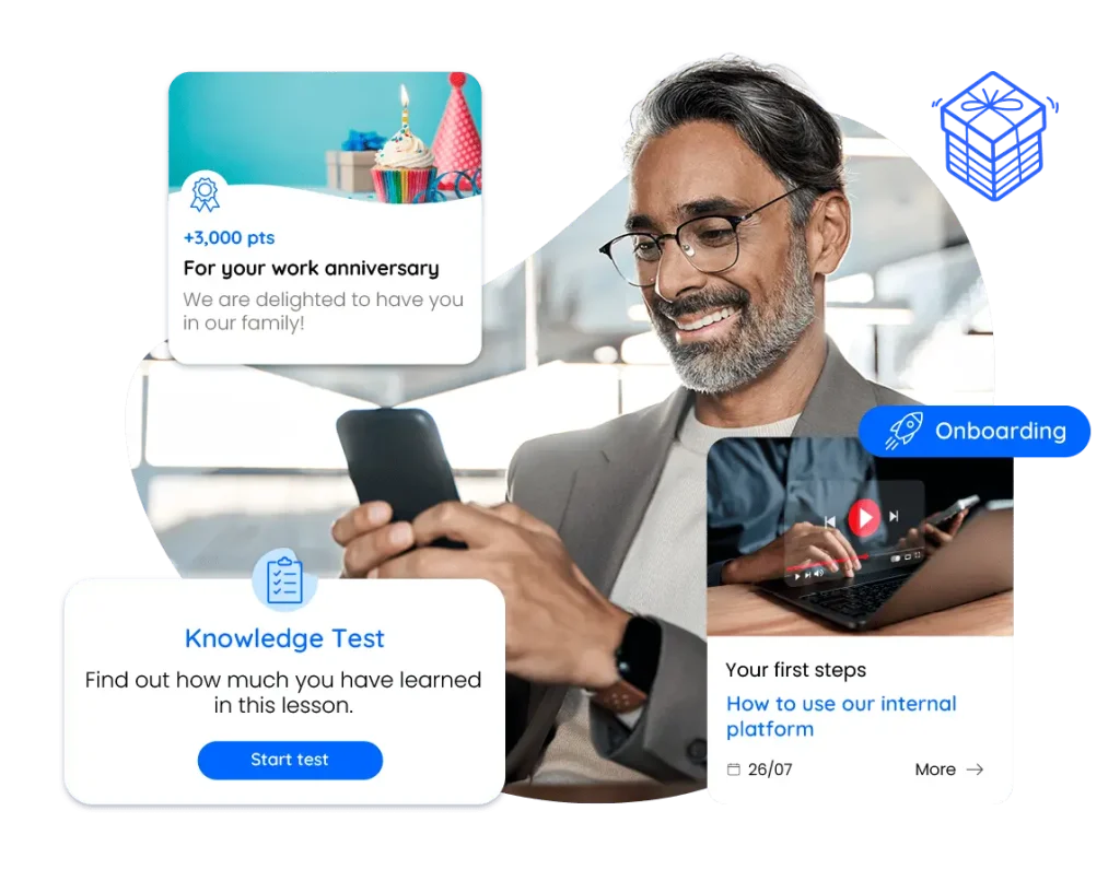 One single platform, one comprehensive solution. Manage all corporate communication, training, events and activities, surveys, personalised communication channels and more.