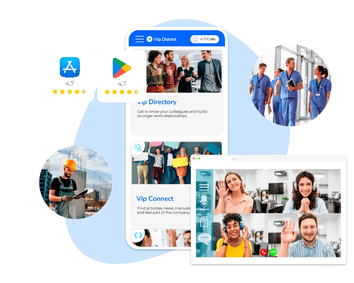We create not only the best experience for an employee, but also for a user. Connect with your employees like never before and give them a TOP rated app.