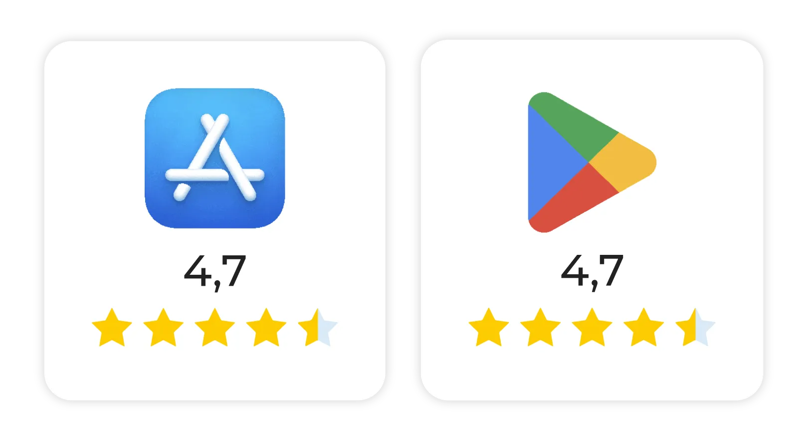 APP beoordeeld: 4.7/5 bij Play Store & APP Store