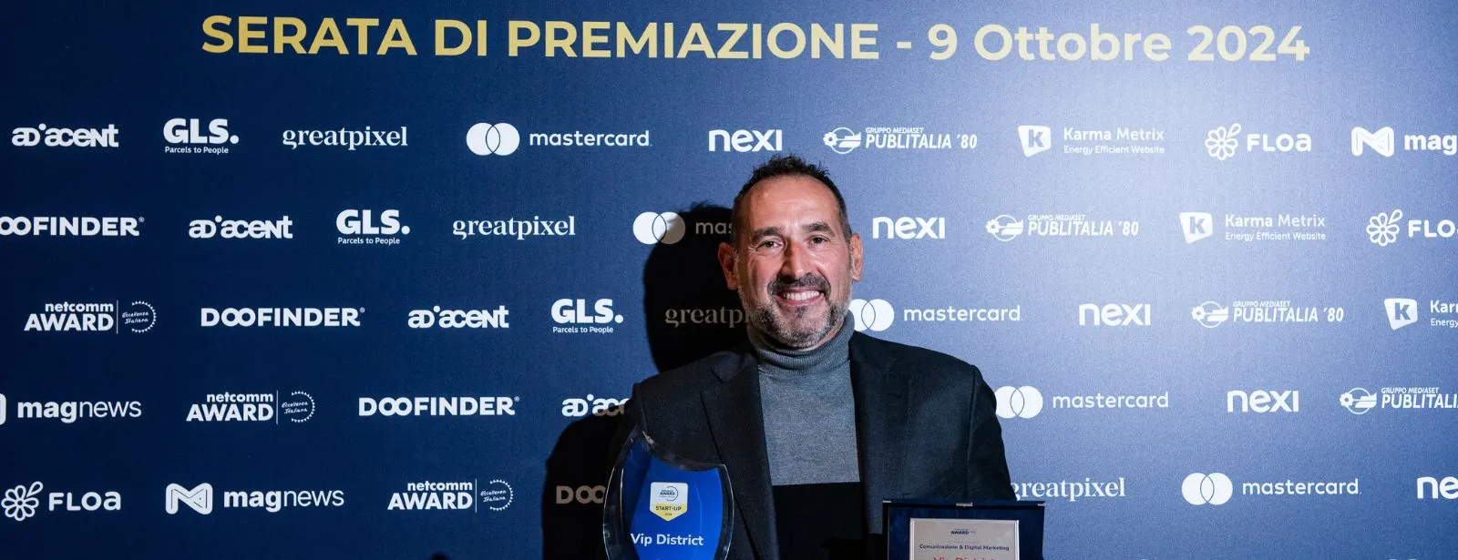 We are thrilled to announce that Vip District has won a double award at the prestigious Netcomm Awards 2024! We won first prize in the Start Up category and took second place in the Communication & Digital Marketing category.