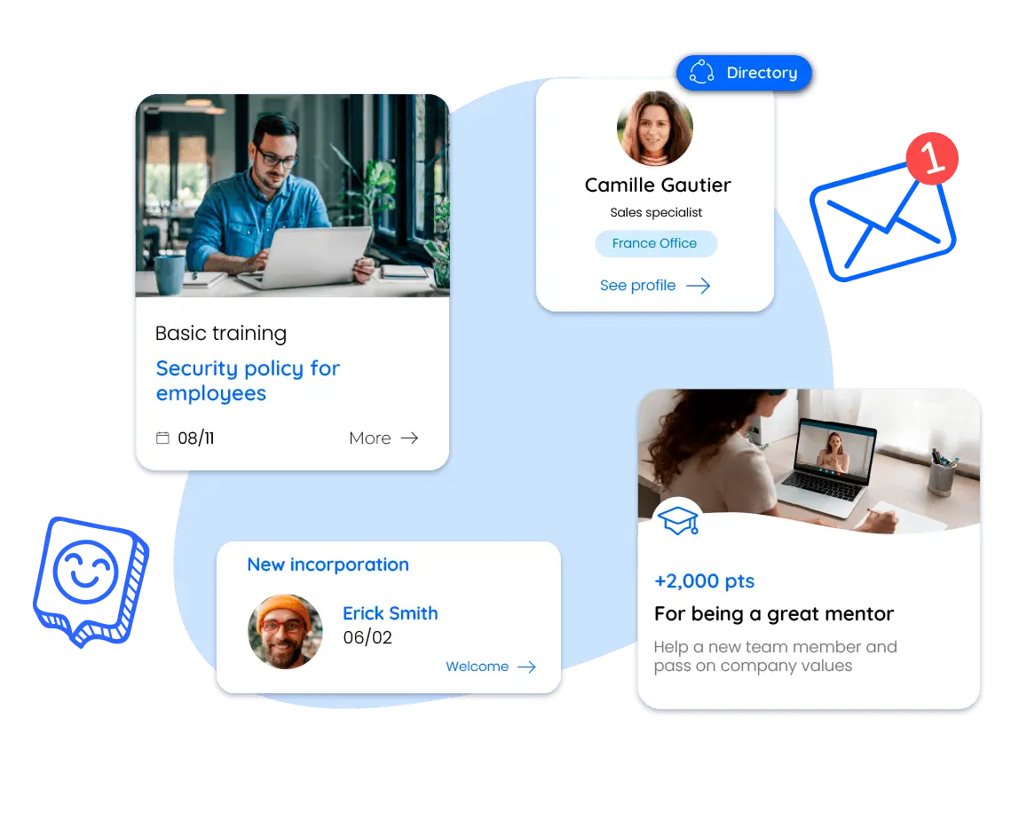 Turn your employee portal into a meeting point for the whole team. With Awards, Directory and Connect, everyone can meet, interact and access the same information.