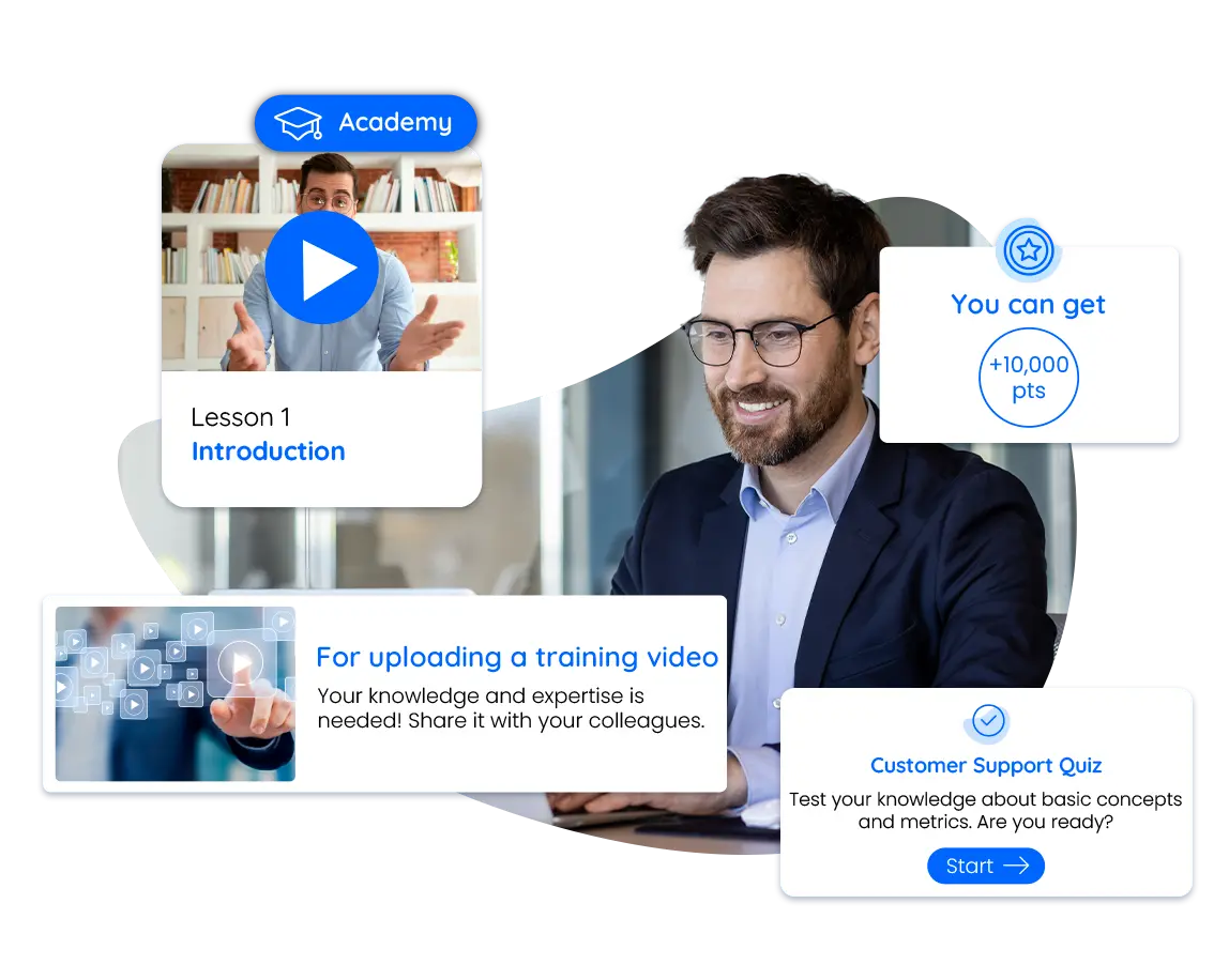 Activate different reward or points campaigns to encourage employee development and collaborative working. Recognise accomplishments achieved in gamified training programmes or reward those who share their knowledge by training others.